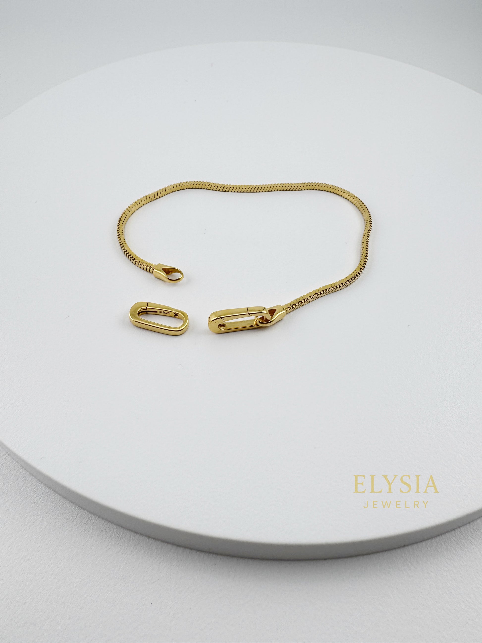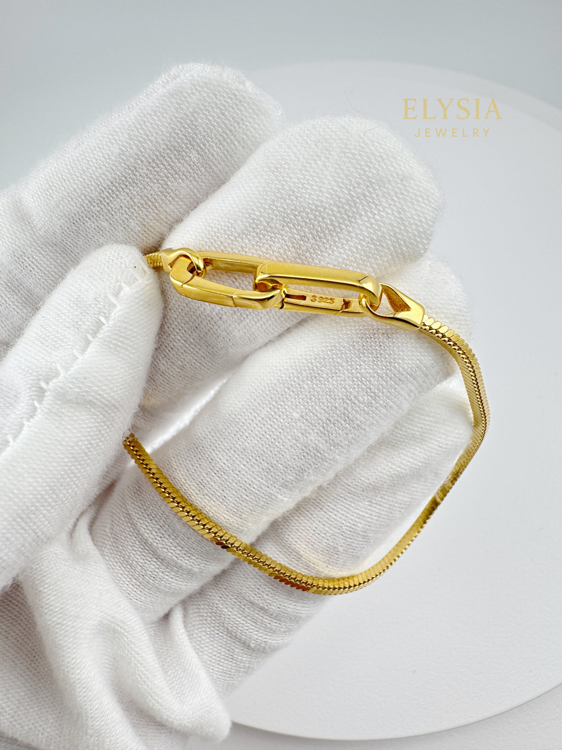 18K Gold Plated 925 Sterling Silver Snake Chain Bracelet — Paperclip Lock