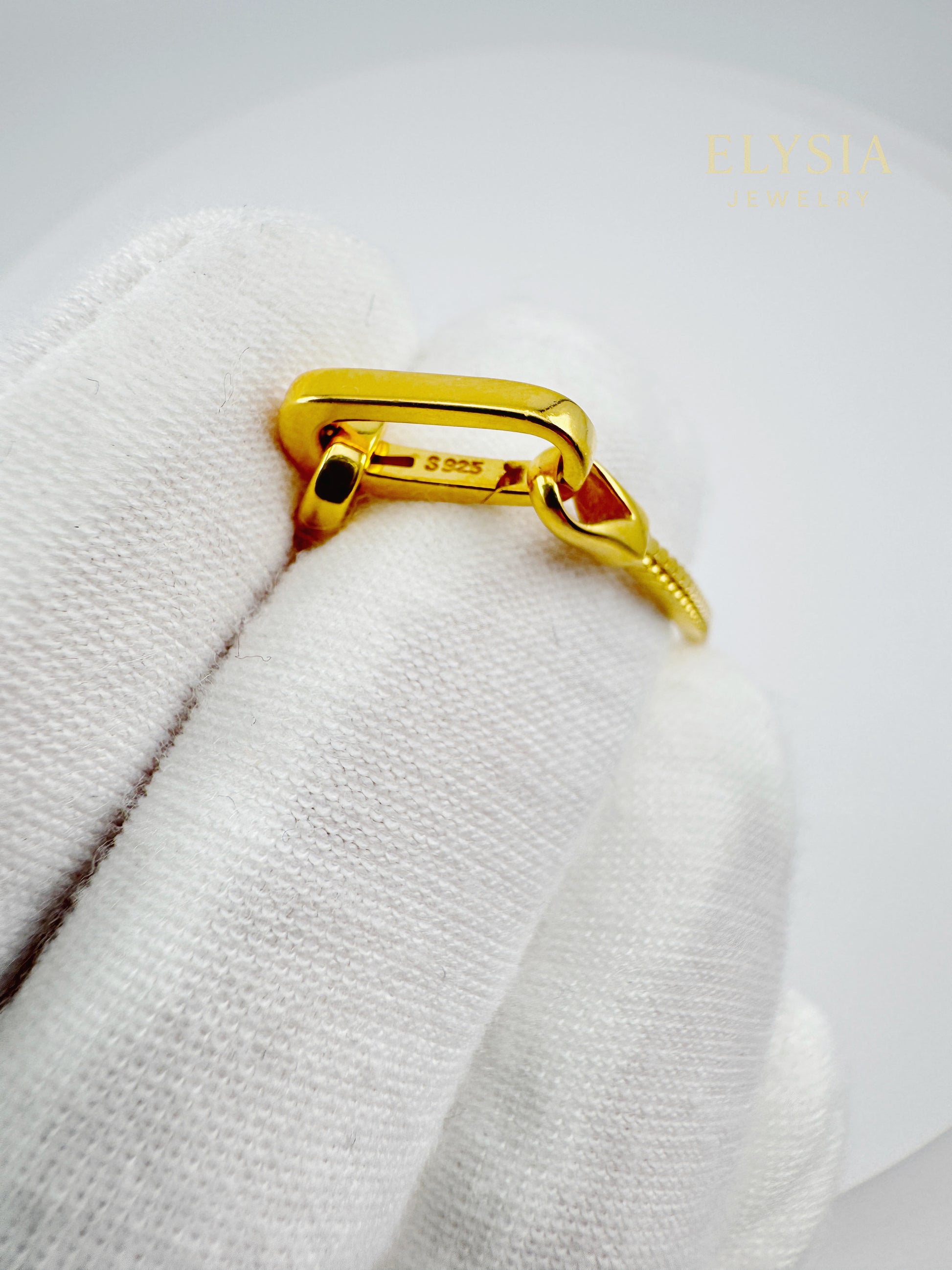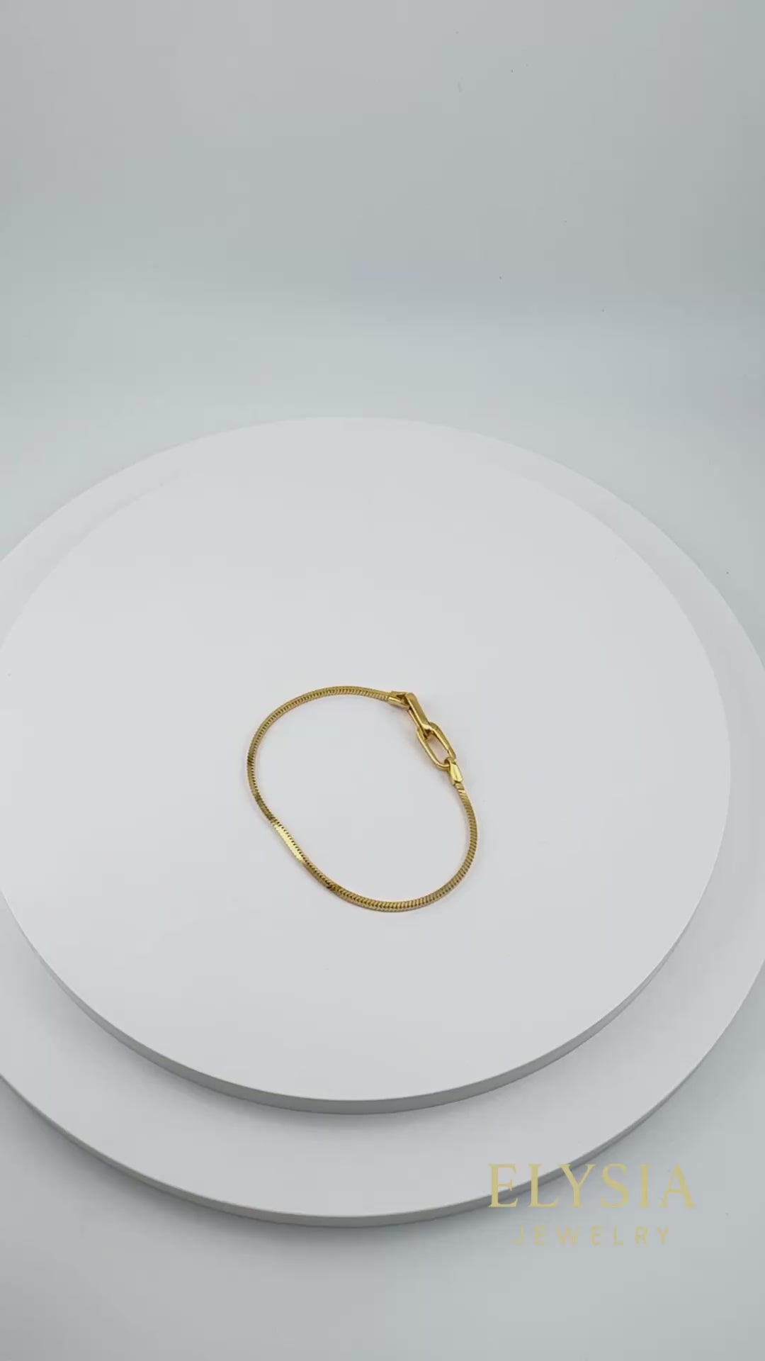 The Italian snake chain moves smoothly and comfortably, while the geometric paperclip lock adds a refined, elegant touch.