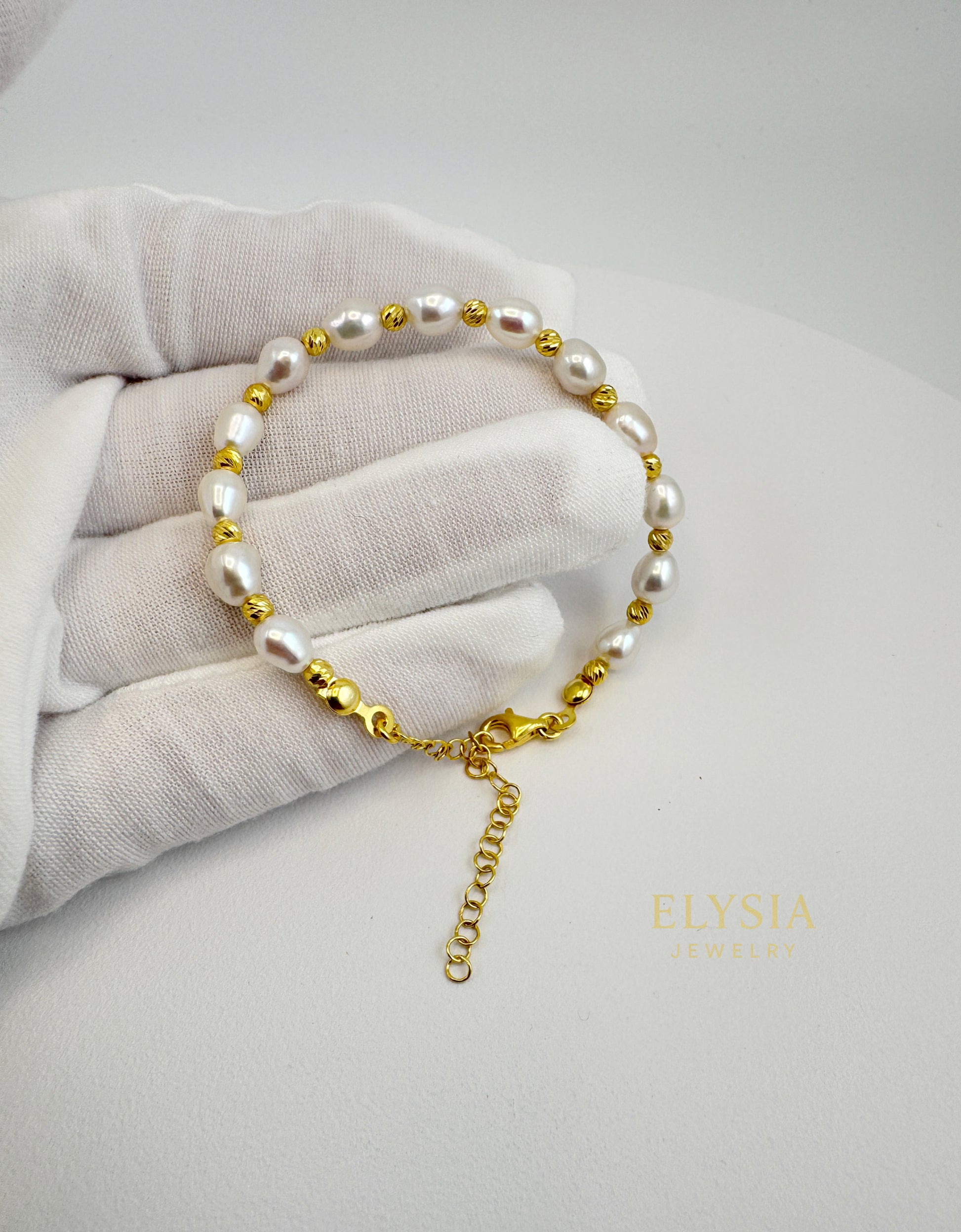 Dual-Tone Freshwater Pearl Bracelet-925 Silver & Gold Accents | Elysia Jewelry