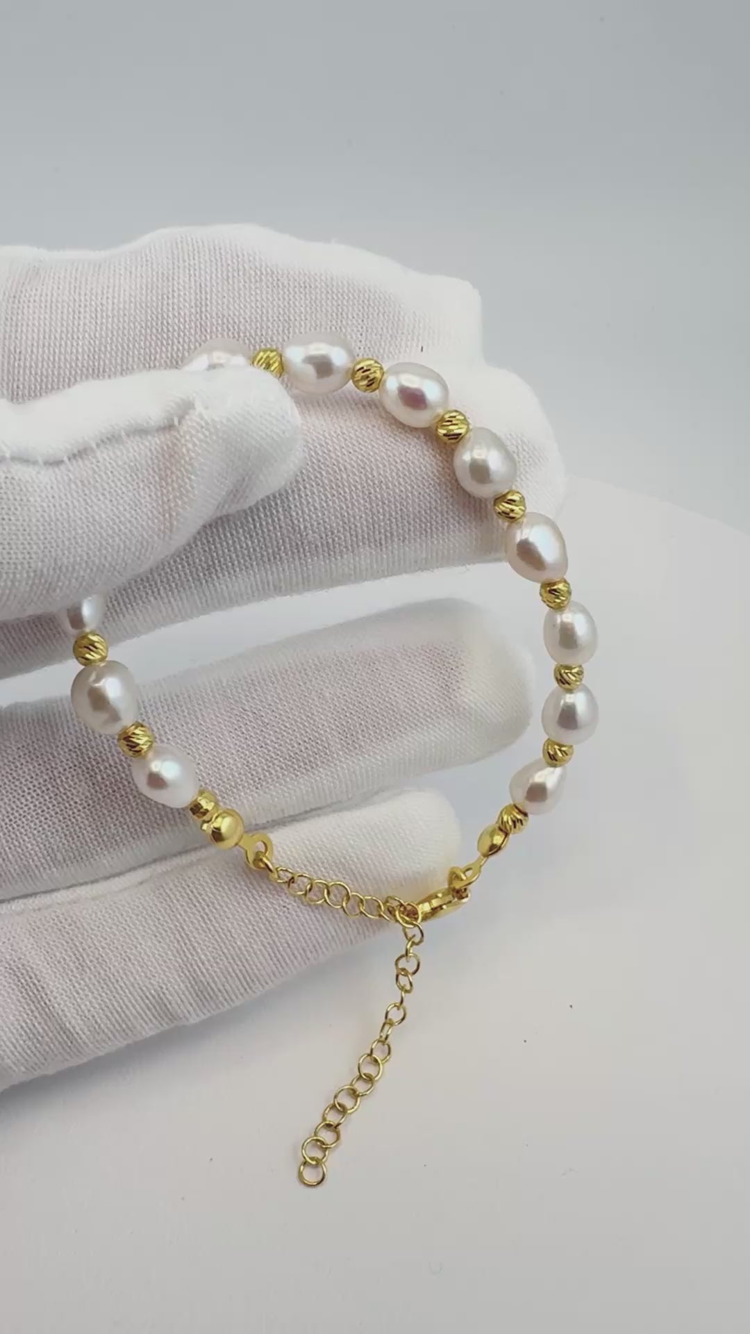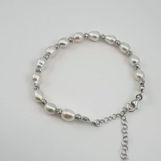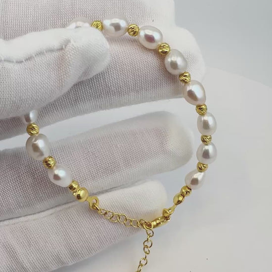 Handcrafted with natural freshwater pearls and 925 sterling silver, this elegant bracelet features delicate gold-plated accents for a timeless dual-tone look.