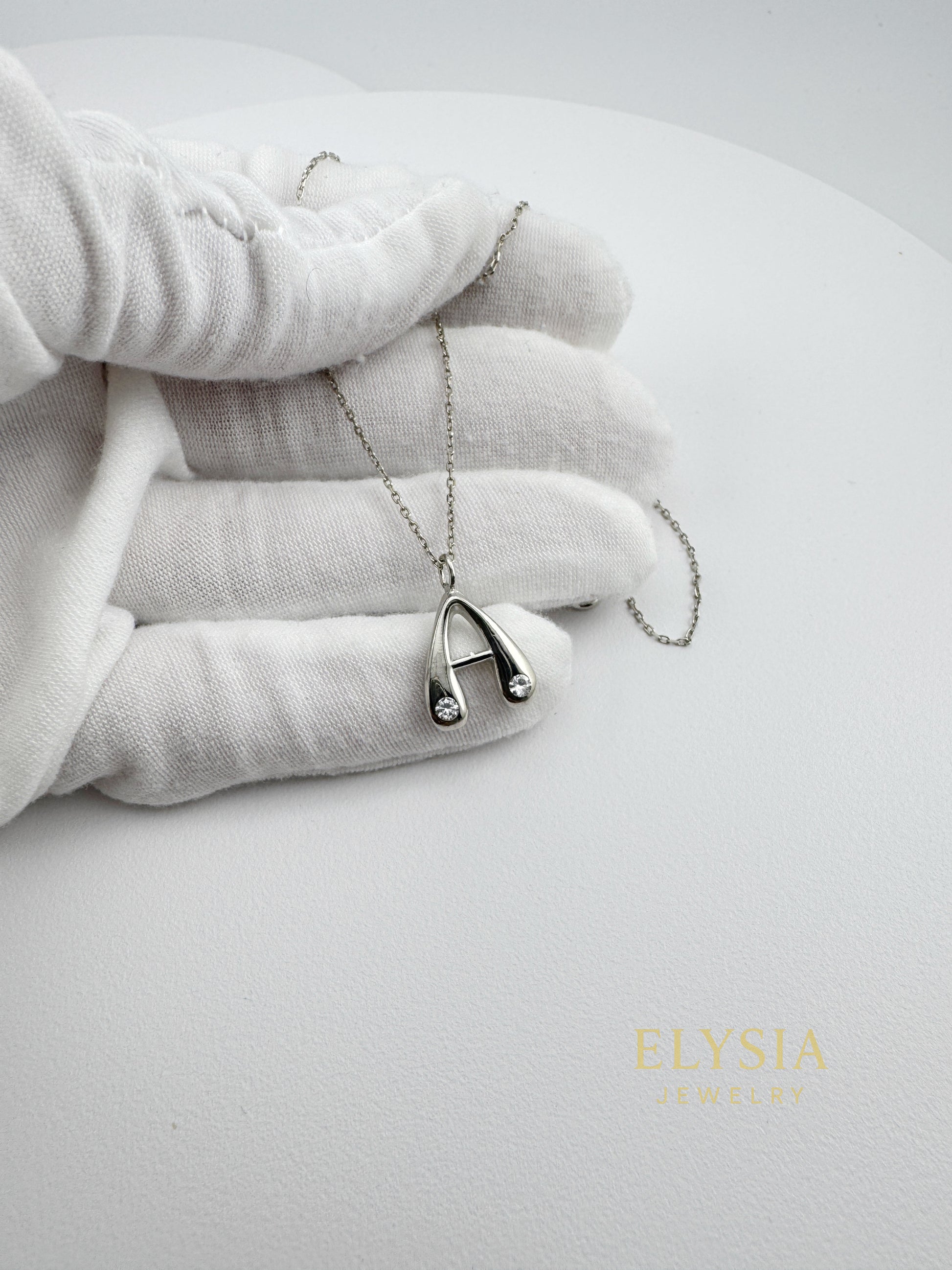 Personalized Letter Necklace — 925 Sterling Silver, Handcrafted, Rhodium Plated