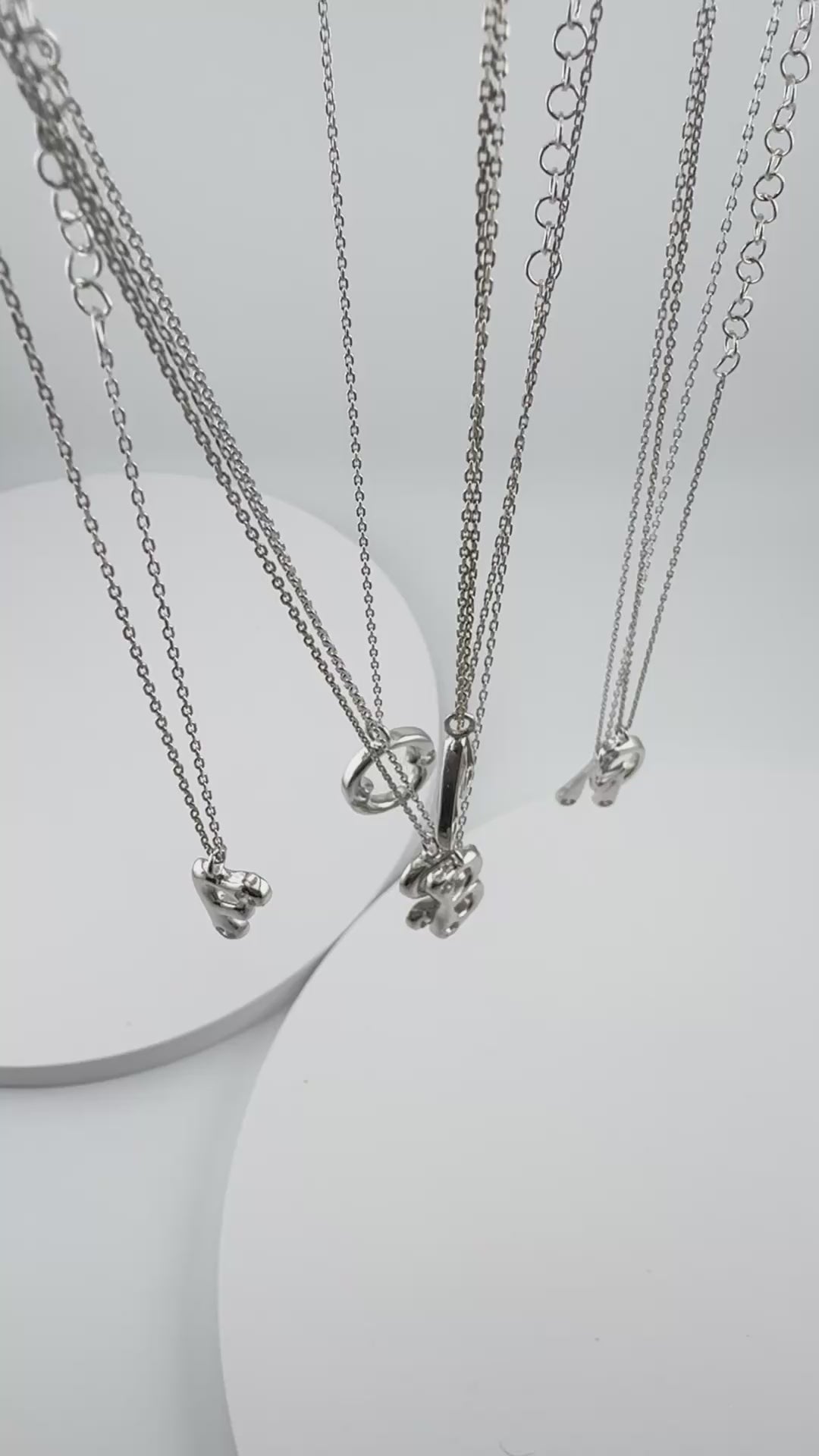 Handcrafted Organic Letter Necklace — 925 Sterling Silver, Rhodium Plated
