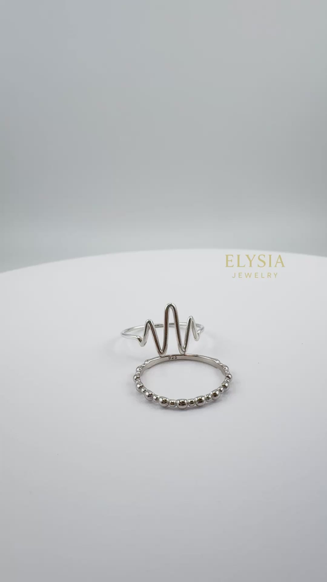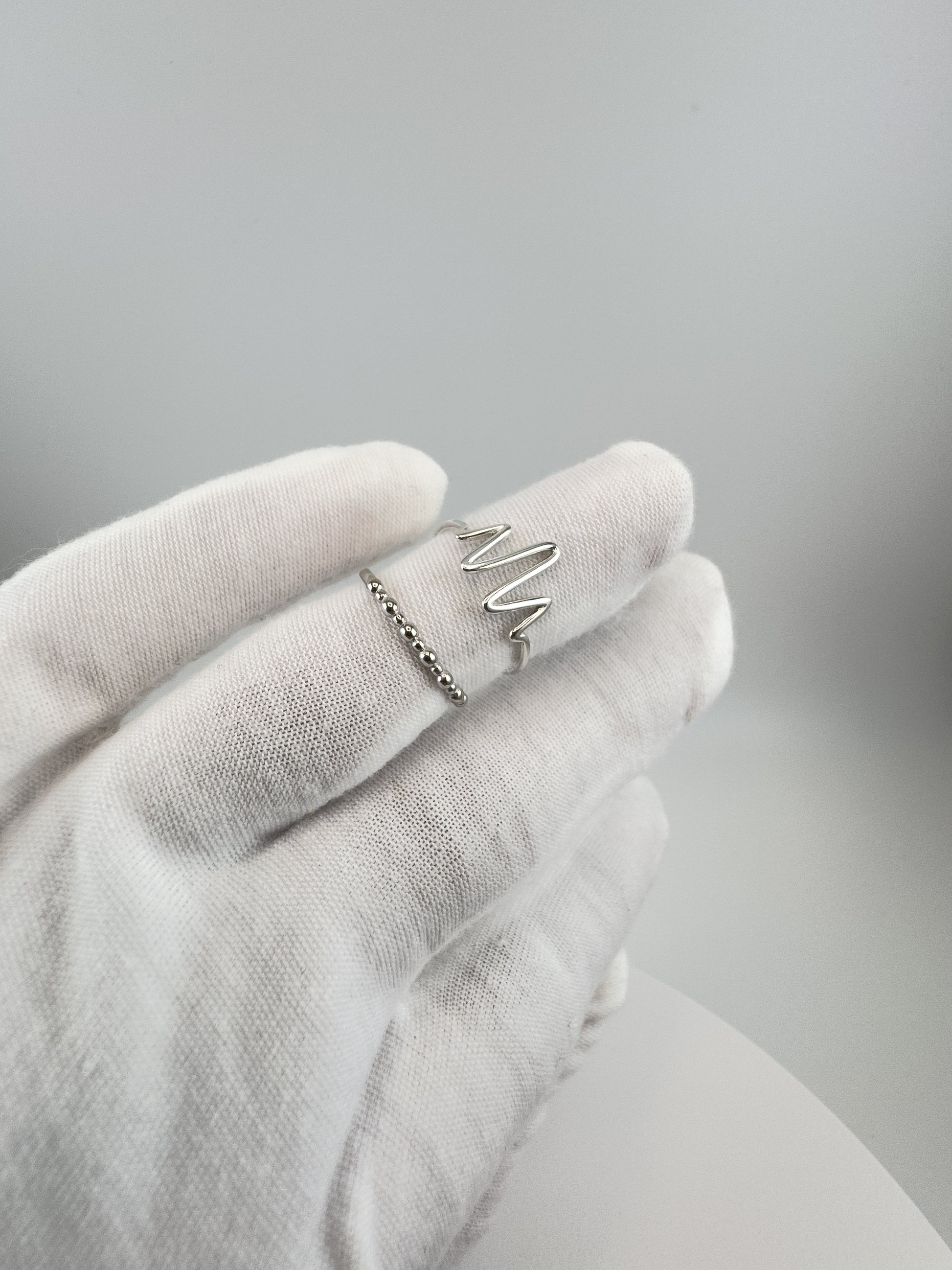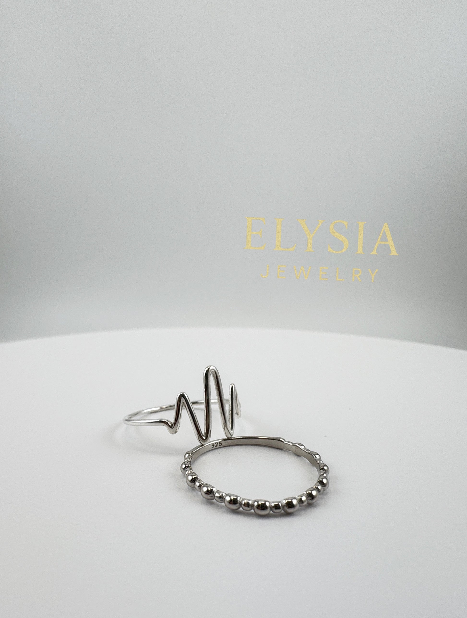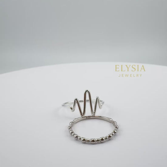 The Silver Wave Duo Set by Elysia Jewelry features two elegant sterling silver rings designed to complement each other perfectly. One showcases a modern wave silhouette, symbolizing flow and balance, while the second has a delicate beaded texture — together creating a timeless minimalist look.