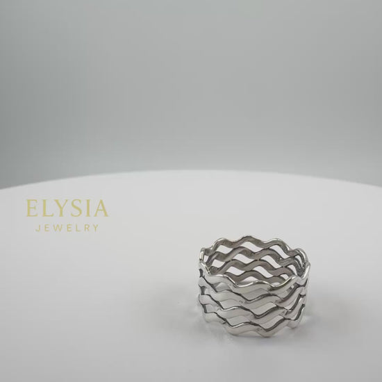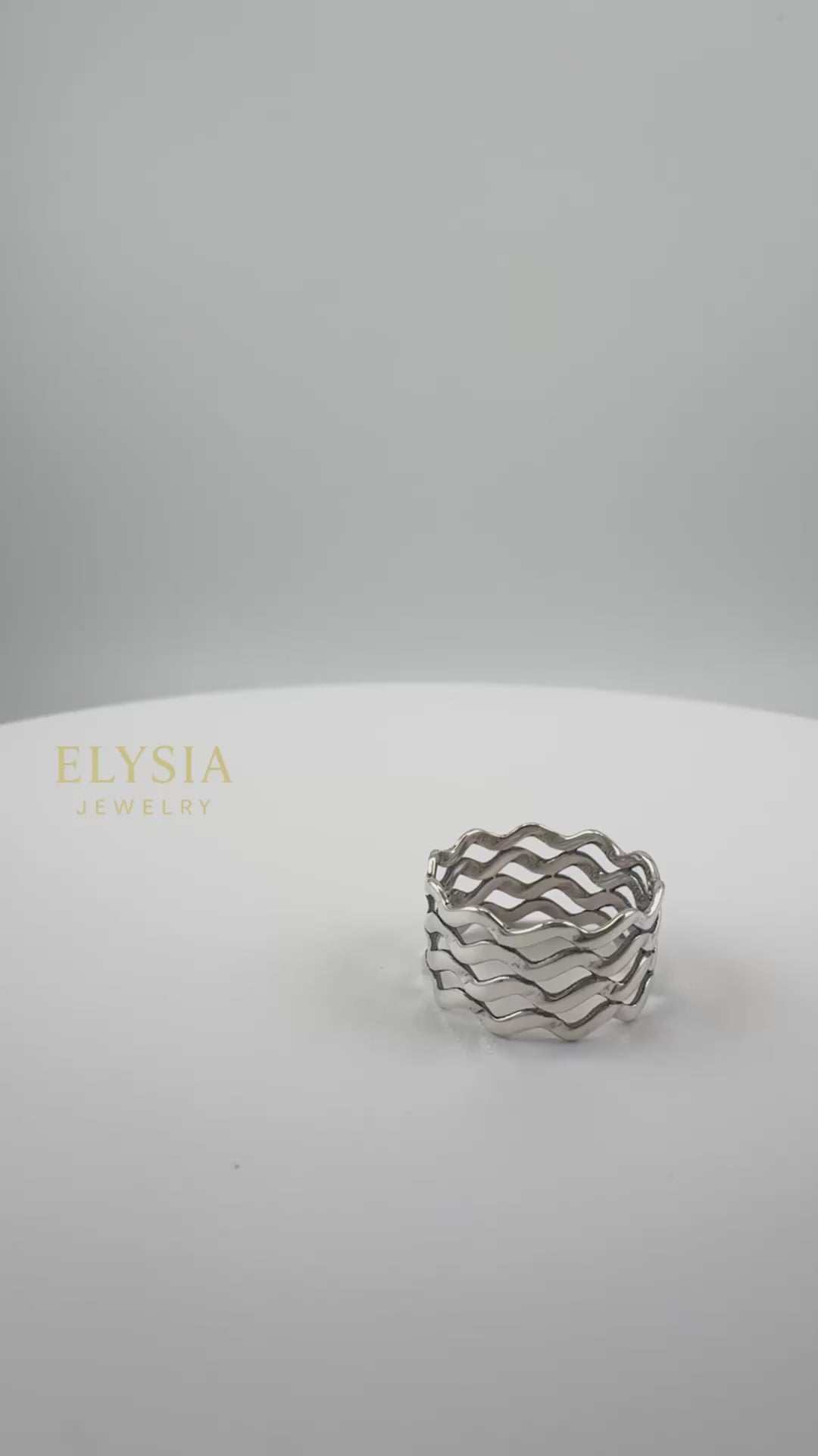 Elegant, minimalist and timeless. Handcrafted from genuine 925 sterling silver with a smooth wavy design that reflects light beautifully. Perfect for everyday wear or as a stacking ring.