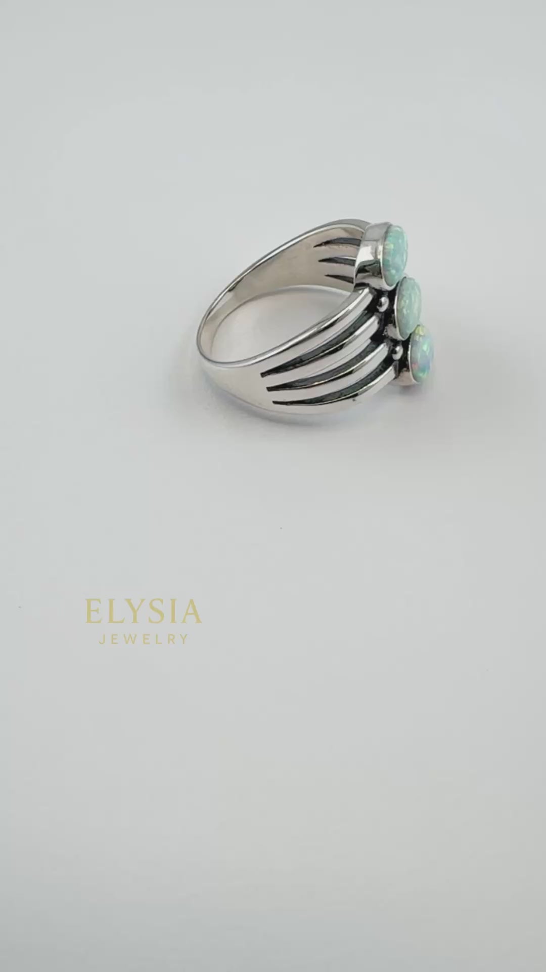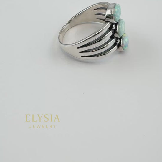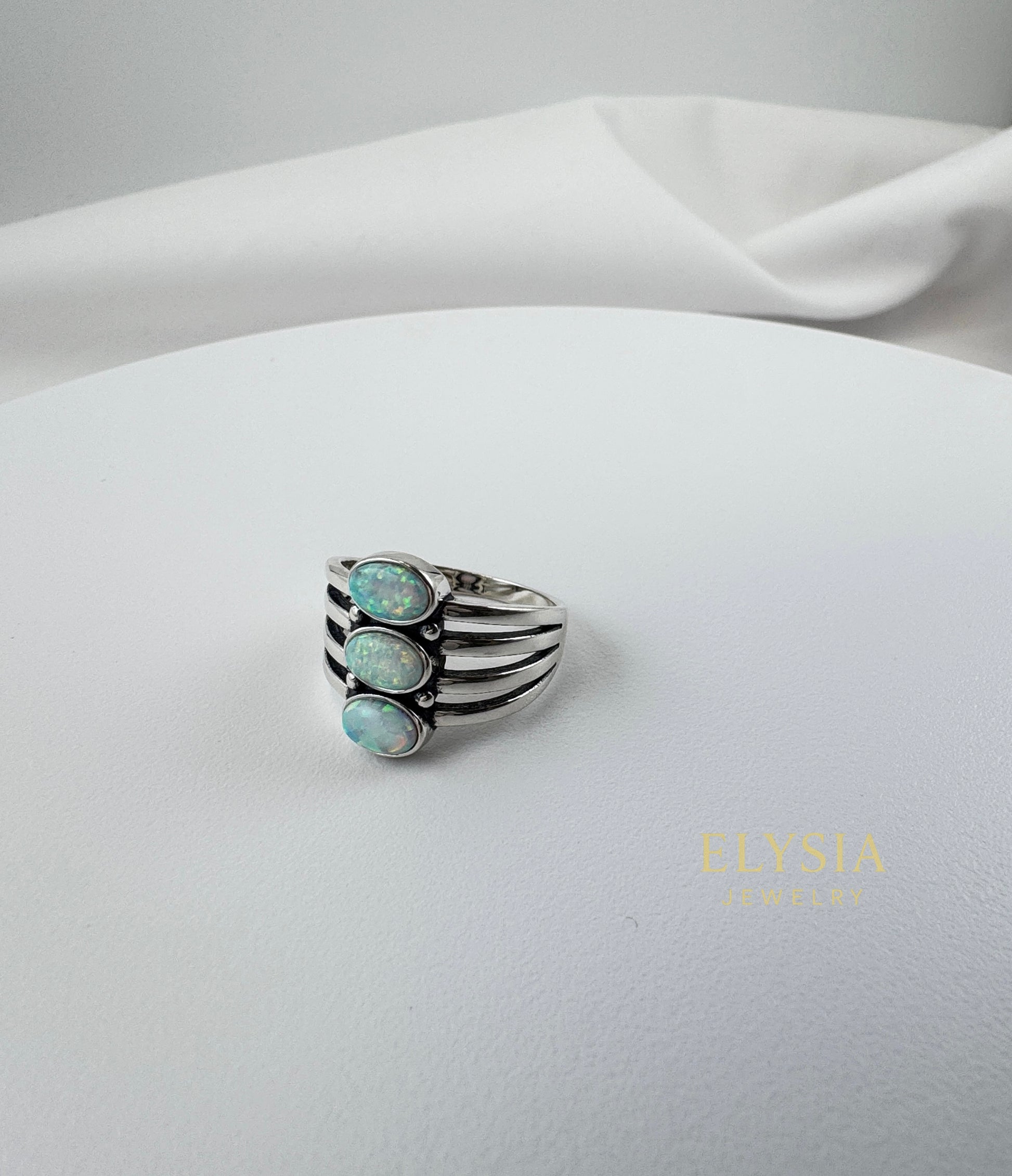 A luminous statement ring handcrafted in solid sterling silver and set with a mesmerizing white opal that shimmers with iridescent hues. Its timeless oval design makes it perfect for everyday wear or special occasions.