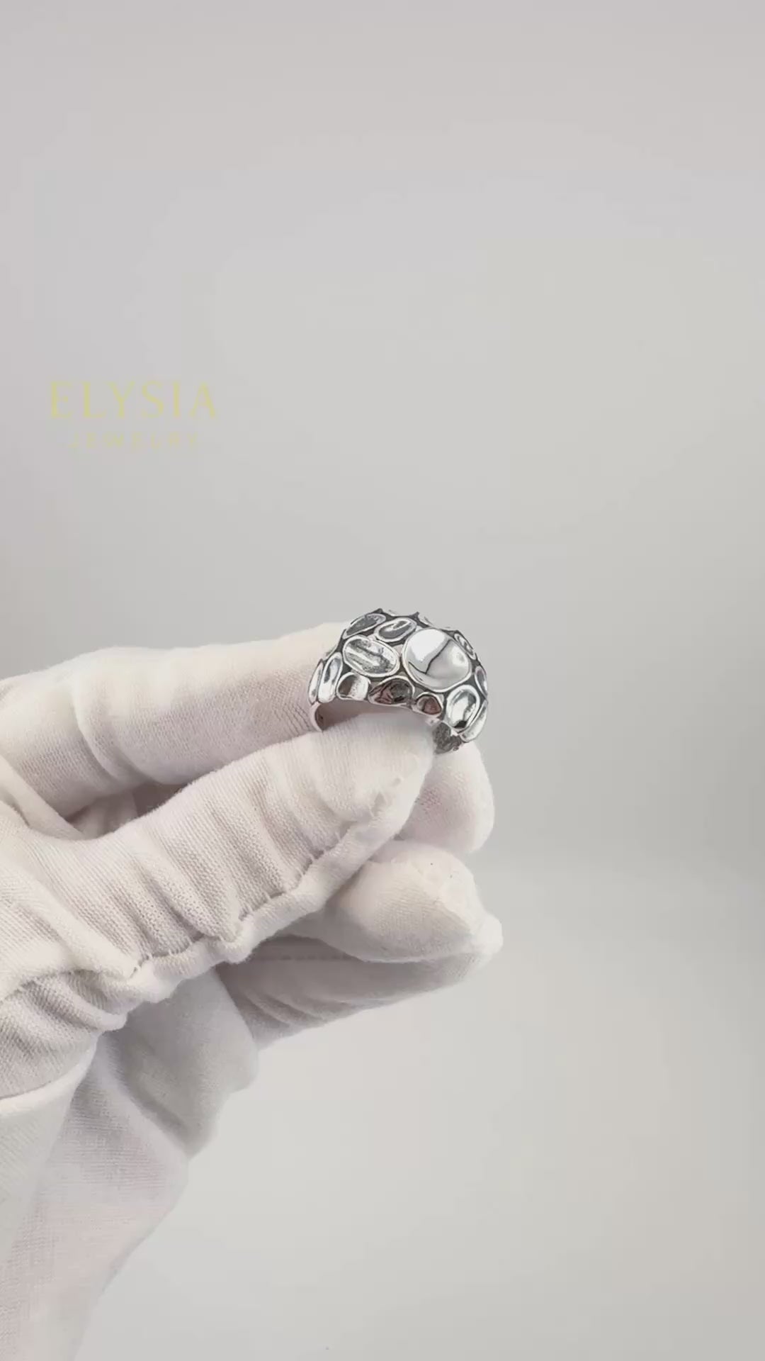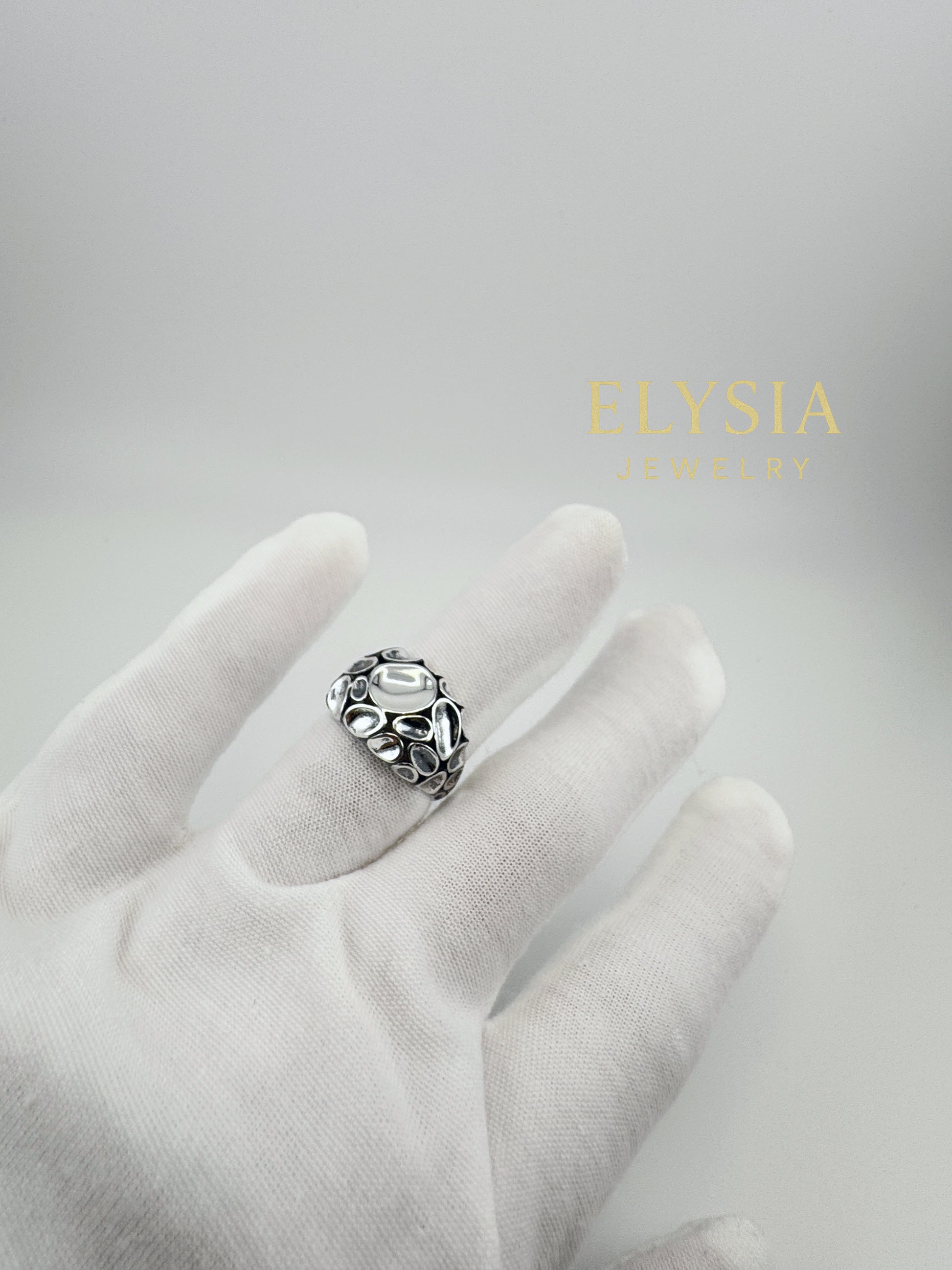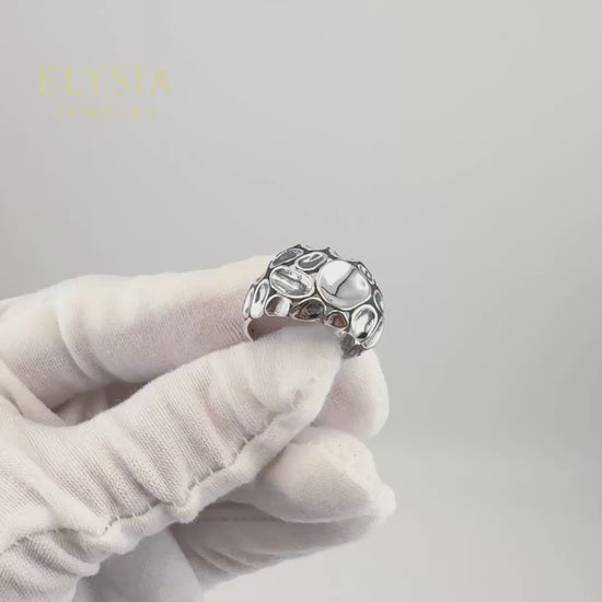 Made from genuine 925 sterling silver, this ring features a fluid, organic texture that reflects light beautifully.